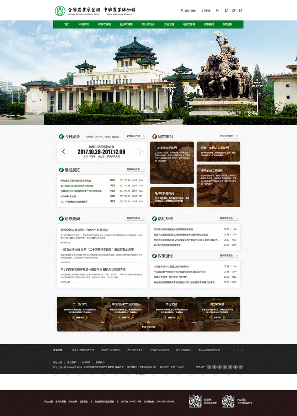 簡介:全國農(nóng)業(yè)展覽館和中國農(nóng)業(yè)博物館是兩塊牌子、一個(gè)機(jī)構(gòu),為中華人民共和國農(nóng)業(yè)農(nóng)村部直屬事業(yè)單位。全國農(nóng)業(yè)展覽館是1958年經(jīng)國務(wù)院批準(zhǔn)興建的首都十大建筑之一,1959年9月正式落成并對外開放。中國農(nóng)業(yè)博物館是1983年7月經(jīng)國務(wù)院批準(zhǔn),在全國農(nóng)業(yè)展覽館基礎(chǔ)上籌建的國家級(jí)專業(yè)博物館,1986年9月正式對外開放,2012年被評(píng)為國家一級(jí)博物館。