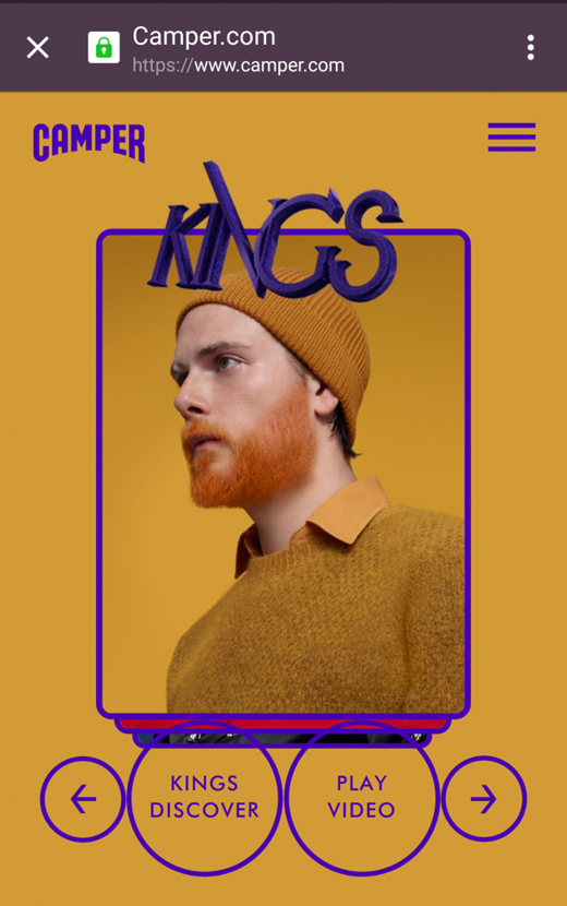 鞋類企業(yè)Camper為一個活動創(chuàng)建一個高度視覺性的著陸頁,動作和視頻很多,內(nèi)容很少。但網(wǎng)站仍然將它放到了網(wǎng)店的首頁。