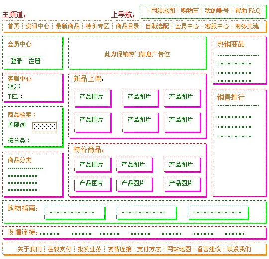 3、排版樣式:目前主流為800象素橫寬,也有采用1024象素的。