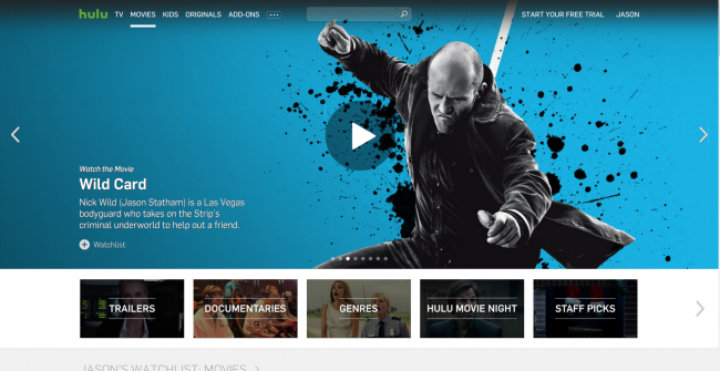 我們可以看看幾個(gè)知名的新聞與電視網(wǎng),比如探索頻道(上圖)和Hulu(下圖)。這類的媒體網(wǎng)站常常依靠滑塊來展示不斷變化的最新熱門文章和視頻等。如果你要提供頻繁變化的大量內(nèi)容(尤其是視頻內(nèi)容)時(shí),滑塊是非常好的選擇。