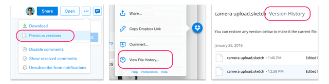 分別是:Previous versions、View File History、Version History