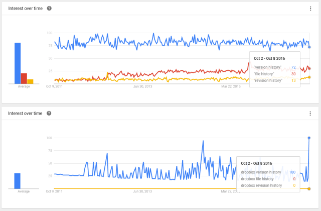 Google Trends 告訴我們,人們較常檢索 “version history” ,這也是最后應(yīng)用這個(gè)詞于產(chǎn)品的主因。