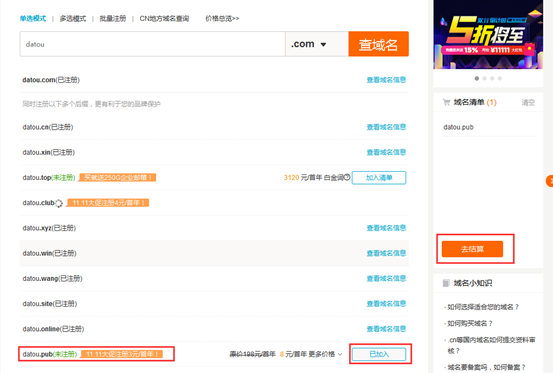 點(diǎn)擊 進(jìn)入到域名種類查詢界面。